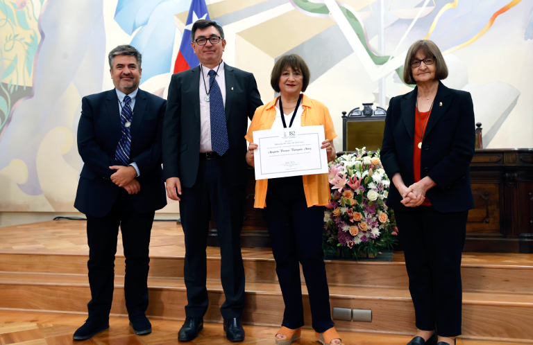 La ceremonia contó con la presencia de destacadas autoridades de la Universidad de Chile, entre ellas el profesor Claudio Pastenes, vicerrector de Asuntos Académicos; la profesora Pilar Barba, vicerrectora de Extensión y Comunicaciones; y la profesora Josiane Bonnefoy, vicerrectora de Asuntos Estudiantiles y Comunitarios. Asimismo, asistió Fabiola Divin, directora de Gestión y Desarrollo de Personas, junto a integrantes del Consejo y Senado Universitario, y diversas autoridades universitarias, quienes acompañaron este emotivo reconocimiento.